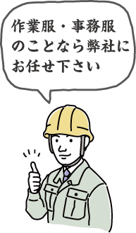 ・作業用ユニフォーム・白衣・事務服・制服・作業用手袋・軍手・安全靴・ゴム長靴・作業靴・作業用帽子・ヘルメット・雨衣・安全保護用具・鳶職人用品・タオル・名入れタオル・シート・のれん・のぼり・特注品・マスク・ベスト・スカート・スラックス・ブレザー・地下足袋